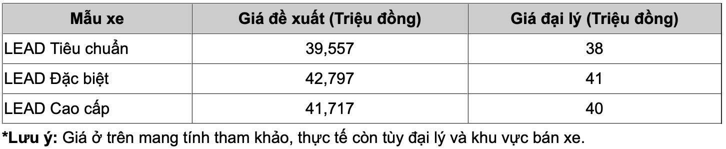 Bảng giá chi tiết của Honda LEAD giữa tháng 12/2023: