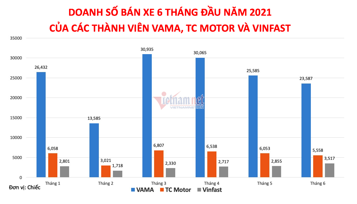Bên cạnh doanh số bán xe của các đơn vị thành viên VAMA, thị trường ô tô Việt Nam còn có sự đóng góp đáng kể của Hyundai (do TC Motor lắp ráp và phân phối) và Vinfast. Trong đó, Hyundai bán được 5.558 xe trong tháng 6 vừa qua, doanh số cộng dồn 6 tháng đầu năm 2021 là 34.035 xe các loại. Còn Vinfast trong tháng 6/2021 cũng tiêu thụ đến 3.517 xe, đưa doanh số nửa đầu năm của hãng này lên 15.938 xe.