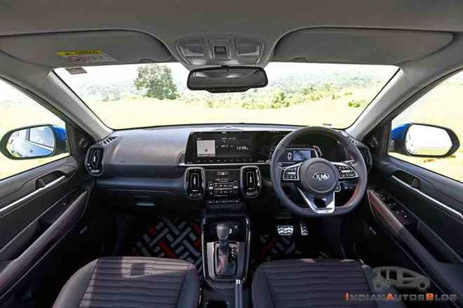 Mặc dù là mẫu xe giá rẻ nhưng nội thất của Kia Sonet 2021 không thua kém bất kì mẫu xe nào trong phân khúc SUV hạng B tại Ấn Độ với vô-lăng vát đáy thể thao, bảng đồng hồ với màn hình đa thông tin 4,2 inch, màn hình cảm ứng 10,25 inch hỗ trợ kết nối Apple CarPlay, Android Auto có phần mềm kết nối từ xa UVO với 57 tính năng kết nối khác nhau, hệ thống âm thanh Bose 7 loa với sub-woofer.