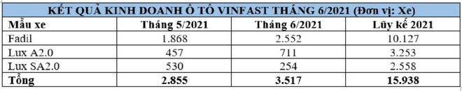 VinFast Fadil là mẫu xe hạng A lần thứ 3 liên tiếp nắm giữ ngôi vị đầu bảng xe ô tô bán chạy nhất Việt Nam. Trong tháng 6/2021, Fadil đạt doanh số 2.552 xe, tăng gần 700 xe so với tháng trước và tăng gần 400 xe so với cùng kì năm ngoái.