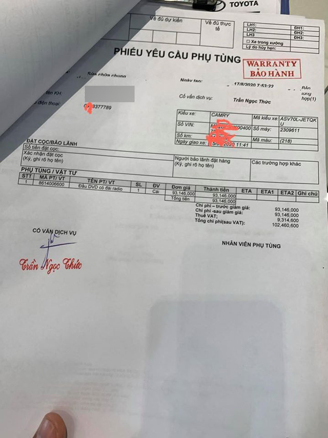 Hôm nay 17/8, hình ảnh chụp lại bảng báo giá thay thế đầu đĩa DVD trên một chiếc Toyota Camry đã khiến cộng đồng mạng không khỏi ngạc nhiên. Cụ thể, tổng chi phí thay thế lên tới hơn 102 triệu đồng (đã bao gồm VAT), tương đương khoảng 1/12 giá bán niêm yết của mẫu xe này.