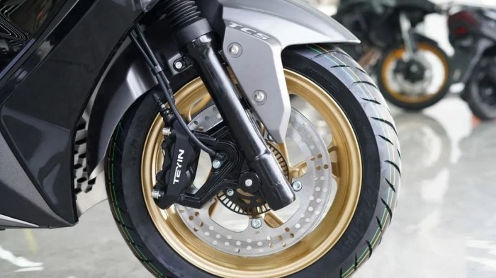 Về trang bị an toàn, cả bánh trước và bánh sau của Tianying TX150E Assault Edition đều được trang bị phanh đĩa với hiệu suất phanh mạnh mẽ. Không những vậy, hãng còn tích hợp cho mẫu xe tay ga này hệ thống chống bó cứng phanh ABS 2 kênh và hệ thống kiểm soát lực kéo TCS đẳng cấp không thua kém Honda SH.