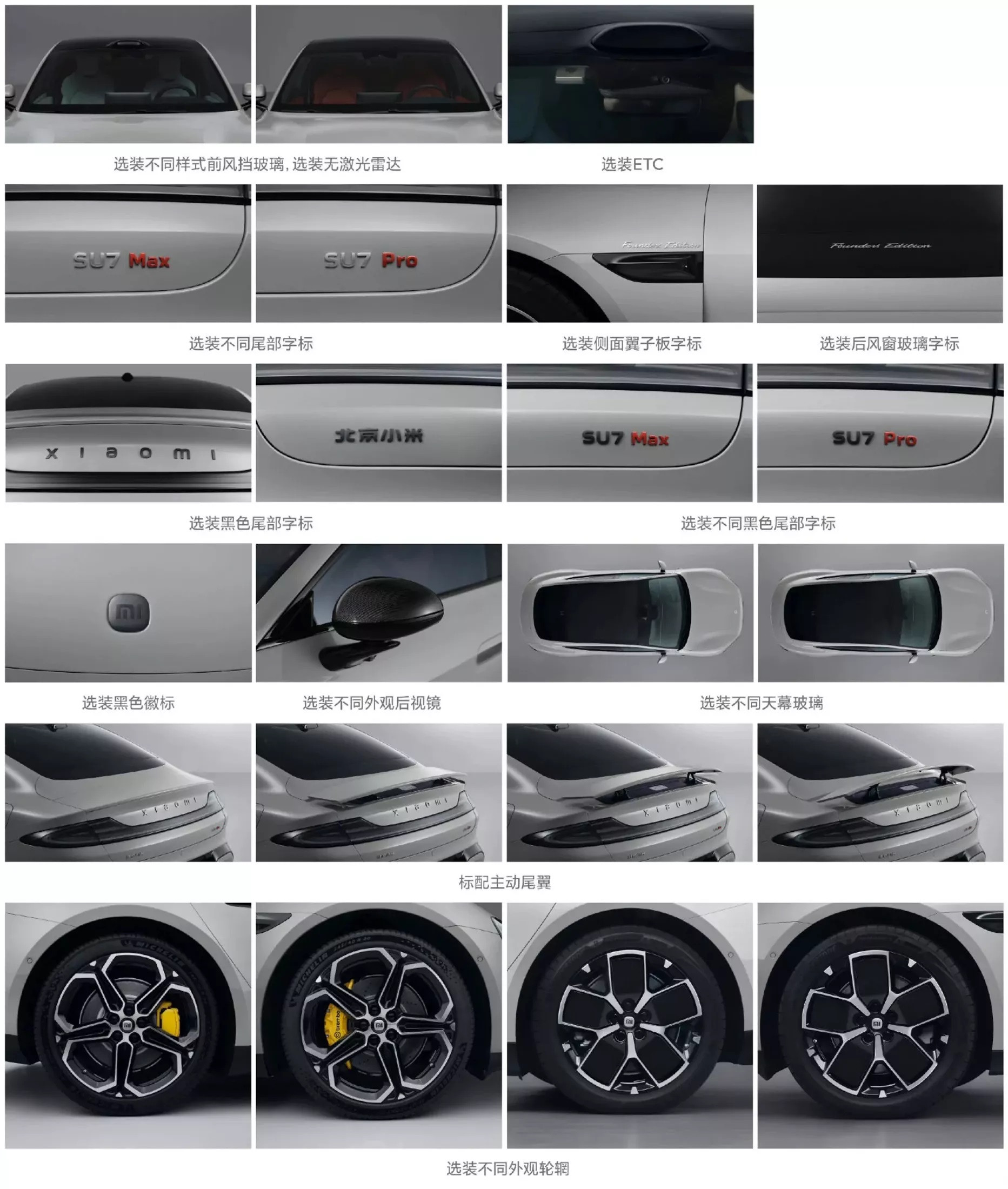 Theo thông tin trên MIIT, có ba cấu hình phiên bản là SU7, SU7 Pro và SU7 Max. Một số phiên bản sẽ có cánh gió sau chủ động.