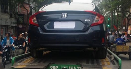 Mới đây trên mạng xuất hiện hình ảnh một chiếc Honda Civic 2016 được vận chuyển bằng xe cứu hộ trên đường phố Hà Nội. Nhiều người dễ dàng nhận ra đây mẫu compact Honda Civic thế hệ thứ 10 nhờ cụm đèn chiếu hậu được thiết kế độc đáo kiểu boomerang hình chữ C cách điệu, cản sang mang đậm phong cách thể thao. Trước hình ảnh rò rỉ này khiến nhiều người dùng Việt “đứng ngồi không yên” bởi đây cũng là mẫu compact có lượng yêu thích và tiêu thụ rất lớn.