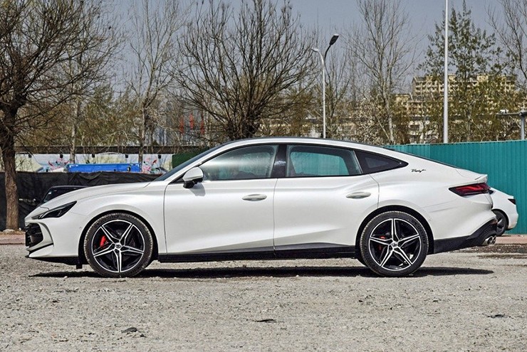 Xe có phần mui được thiết kế theo kiểu dáng coupe bắt mắt, đi cùng cửa sổ không khung, la-zăng hợp kim lớn và thân xe điêu khắc góp phần tạo nên vẻ sang trọng cho chiếc sedan này. Phần đuôi xe có lẽ là phần hấp dẫn nhất của MG7 2023 với cánh lướt gió khí động học giống như trên Porsche Panamera.