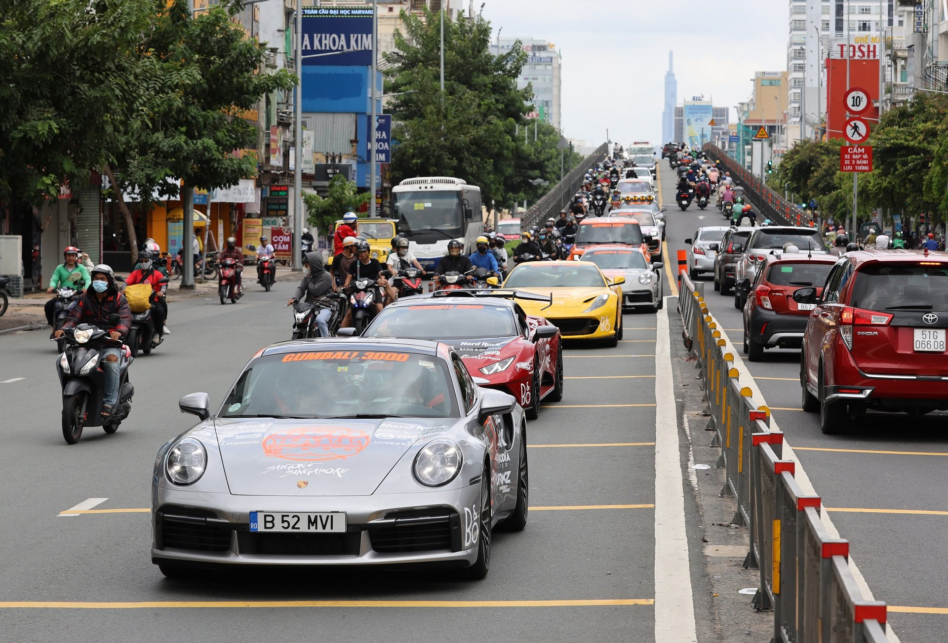 Gumball 3000 là hành trình siêu xe lớn nhất thế giới được khởi động từ năm 1999. Kỷ niệm 25 năm tổ chức (1999 - 2024), hành trình Gumball 3000 năm nay - Saigon to Singapore lần đầu tiên đến Việt Nam. Theo đó, hơn 100 siêu xe từ Porsche cổ điển đến Rolls Royce hay các dòng hypercar Pagani, Koenigsegg đã có mặt và xuất phát từ TP HCM trong hành trình kéo dài từ 14-22/9, đi qua 5 quốc gia Việt Nam - Campuchia - Malaysia - Thái Lan - Singapore. Không chỉ quy tụ dàn xe 'đỉnh', Gumball 3000 có sự xuất hiện của những tay lái nổi tiếng như DDE, James Walker “JWW", nhiều ngôi sao tên tuổi như Patrice Evra, iShowSpeed, Sara Choi, Nico Leonard Van De Horst, Vikkstar, Bun B, Lazar Beam…