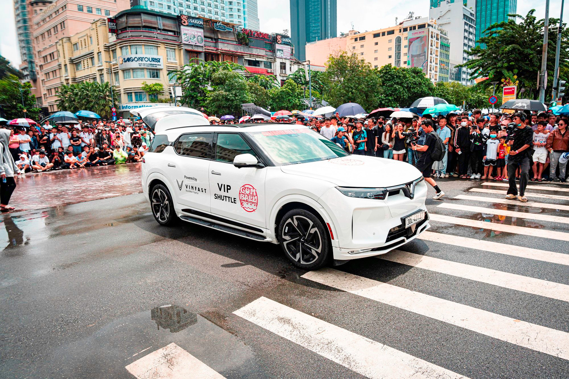 Tại đây, dàn xe VinFast VF 9, VF 7 với logo FGF được sử dụng để đưa đón các khách mời là các KOLS, cầu thủ, người nổi tiếng như cựu hậu vệ Manchester United Patrice Evra hay Nico Leonard Van De Hors, stremer nổi tiếng IShowSpeed khi đến Việt Nam, di chuyển giữa các địa điểm diễn ra sự kiện. Trong đó 14 chiếc VF 9 và 7 chiếc VF 7 được huy động phục vụ cho Gumball 3000 với quy mô cực hoành tráng này.