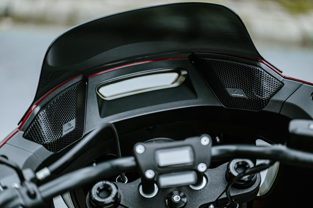 So với Low Rider ST, Low Rider El Diablo được bổ sung hệ thống âm thanh đặt ở phía trên quây gió. Đây là sản phẩm hợp tác giữa bởi Harley-Davidson và Rockford Fosgate, mang đến chất lượng âm thanh tốt nhất ngay cả khi đang đi trên đường. Hệ thống loa này kết nối với điện thoại qua Bluetooth. Điểm độc đáo của dàn âm thanh này là công nghệ Automatic Volume Control, giúp tự động điều chỉnh âm lượng dựa trên vận tốc của xe.