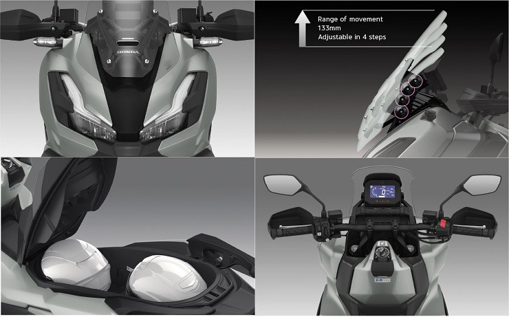 Mẫu tay ga mới nhà Honda được trang bị cụm đèn pha LED với khả năng chiếu sáng tốt, và đảm bảo độ bền cho sản phẩm trong quá trình sử dụng. Ngoài ra, kính chắn gió trước cao có thể điều chỉnh điện 4 cấp độ đảm bảo tối ưu chắn gió trong các điều kiện vận hành khác nhau.