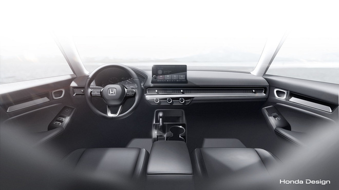 Nội thất Civic có lẽ là điểm bí ẩn nhất trên thế hệ mới khi cho tới thời điểm hiện tại ta chỉ được quan sát khu vực này qua ảnh phác thảo được Honda công bố. Màn cảm ứng trung tâm cỡ lớn hơn, dải mắt lưới tổ ong chạy ngang táp lô ẩn đi hốc gió điều hòa bên dưới và vô lăng mới là một số điểm nhấn.