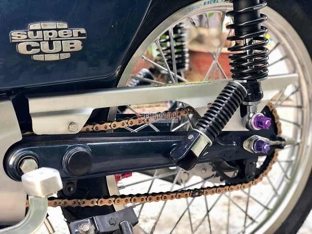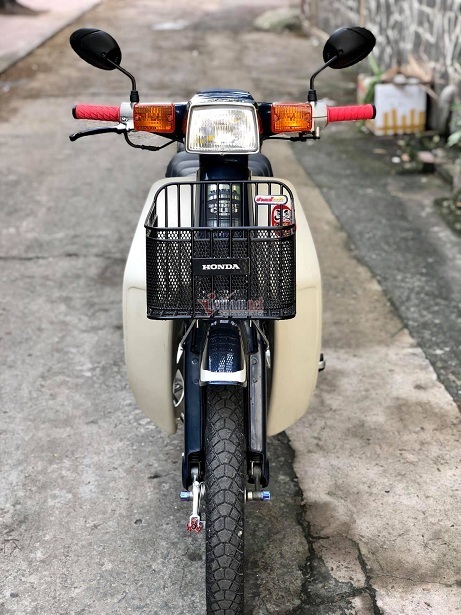 Chia sẻ với phóng viên, anh Huỳnh Tấn Công ở Tân Bình, TP.HCM, chủ chiếc xe cho biết: “Toàn bộ phụ tùng hiệu dọn lên xe đều là hàng zin, đập hộp 100% do tôi đặt mua từ Nhật sau đó mang về nhờ thợ độ có chuyên môn lắp cho. Riêng dàn màu xe (các phần nhựa màu xanh) là rã từ Cub Custom 90 đời 1997 hàng Campuchia sơn zin ”.