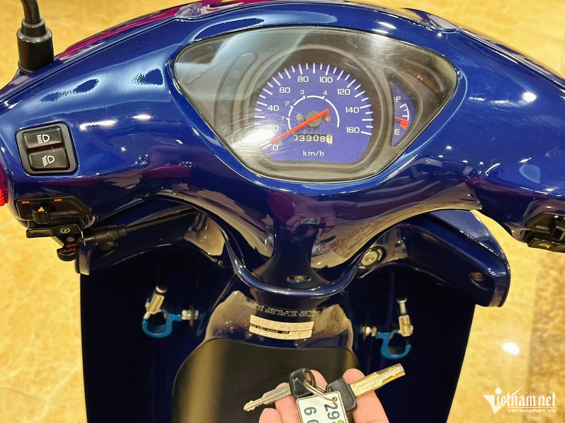 Đồng hồ của xe chỉ con số 3.308km cho thấy chiếc xe này chủ yếu được để trong nhà và cực kỳ ít sử dụng. Xe vẫn còn nguyên giấy tờ và biển 4 số của Hà Nội đăng ký từ năm 2001.