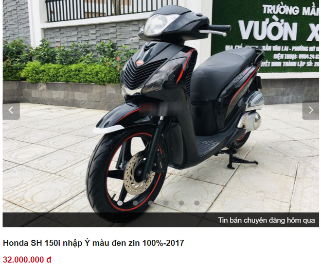 Đơn cử, mẫu Honda SH 150i/150cc màu đen chính chủ được đăng ký năm 2017, lăn bánh 3.000km đang được phát giá 32 triệu đồng trên sàn xe cũ. Theo quảng cáo của người đăng tin, vì mua với mục đích để gia đình sử dụng nên trong hơn 3 năm qua, xe vẫn còn mới, máy móc đều nguyên bản. Ngoài ra, xe vận hành êm vì thường xuyên được đưa đi bảo dưỡng.