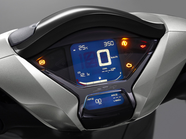 Mặt đồng hồ của Honda SH 350i là dạng màn LCD đơn sắc, có thể hiển thị các thông tin như lượng xăng, giờ, tốc độ, điện áp của bình ắc-quy,... Người dùng còn có thể kết nối xe với xe thông qua bluetooth, hiển thị thông tin xe trên ứng dụng My Honda+.