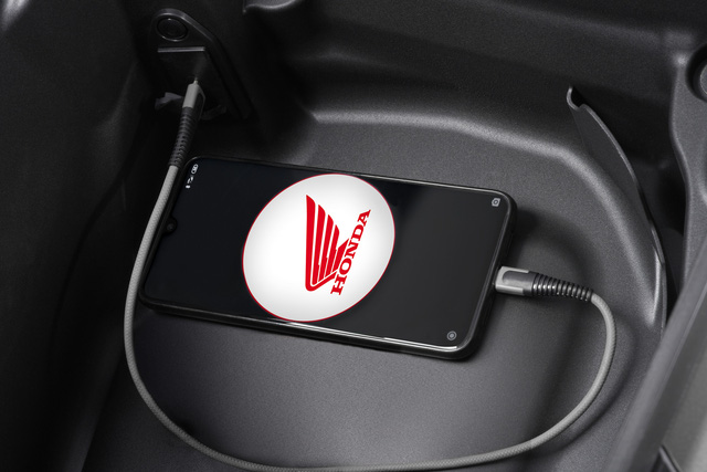 Khoang cốp của Honda SH 350i có thể chứa một mũ bảo hiểm fullface, tích hợp cổng sạc. Nắp bình xăng vẫn được đặt ở bên dưới yên xe thay vì chuyển lên khu vực sàn để chân như mẫu SH 125/150i hiện nay.