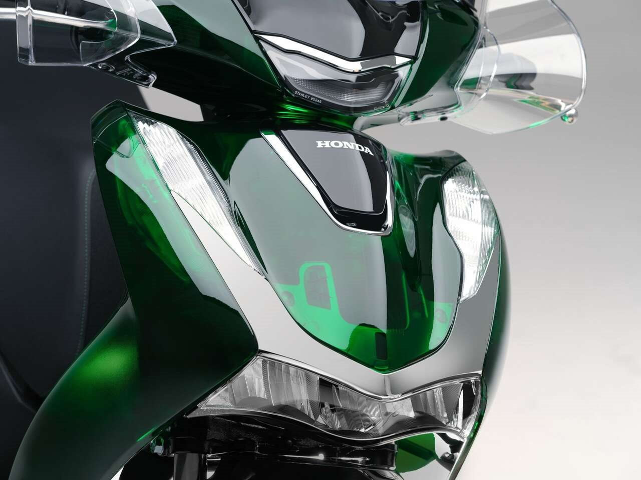 Về cơ bản, Honda SH Vetro vẫn giữ nguyên kiểu dáng như bản SH tiêu chuẩn nhưng được khoác lớp áo màu xanh trong suốt độc đáo. Xe còn có các chi tiết tương phản màu đen, logo Honda màu trắng và tem SH màu bạc trên hai bên thân xe.