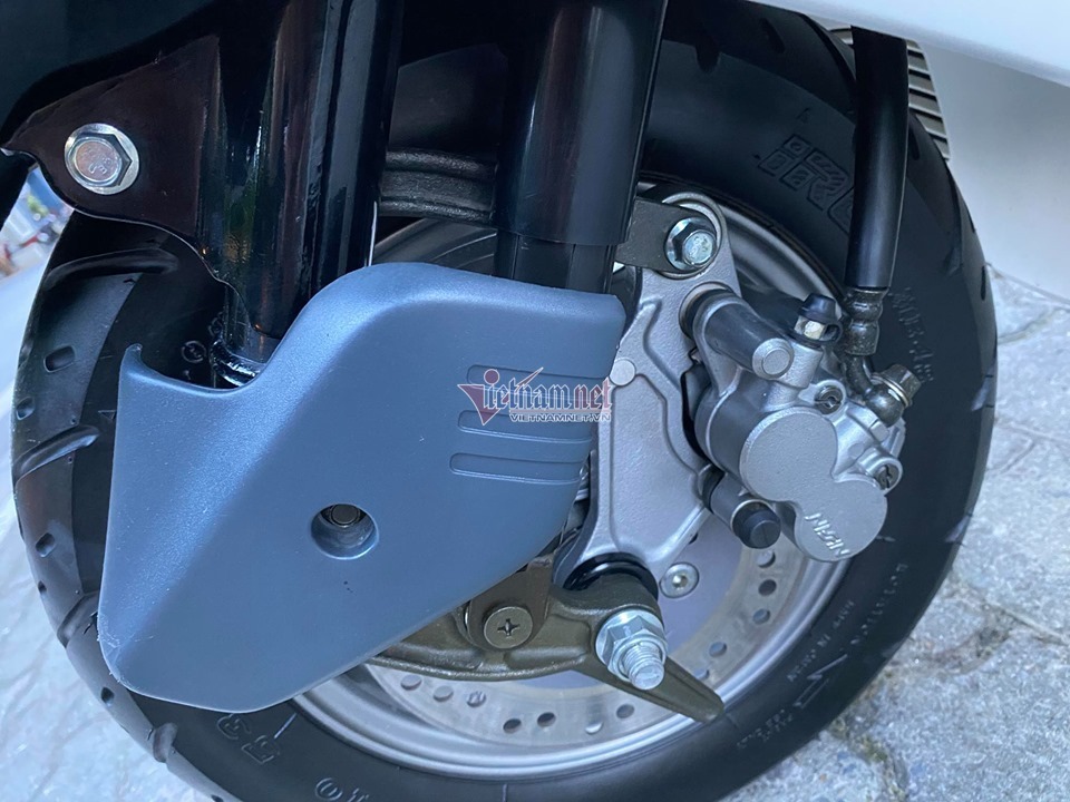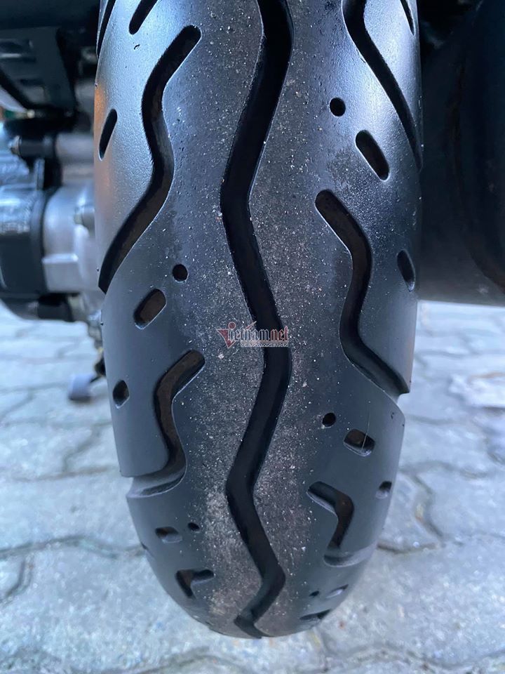 Về ngoại thất, chiếc xe này sở hữu màu sơn trắng còn bóng loáng. Tất cả các bộ phận như đèn pha, bộ quây yếm xe, yên xe, ổ khóa, vành kim loại đúc, bộ lốp xe... vẫn đều như mới, không bị xước sát. Đặc biệt, vành xe và bộ lốp còn nguyên màu mới, rõ nét thông số, năm sản xuất...