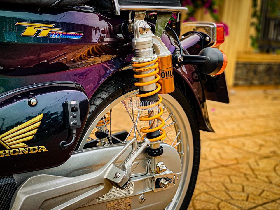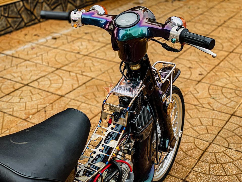 Về tiện ích, bản độ Cub 81 này khác biệt và không kém phần hiện đại với đồng hồ điện tử, khoá Smartkey, đèn pha LED 2 tầng. Nhiều món đồ titanium đắt tiền như cần số, gác ba ga, cổ pô. Toàn bộ ốc gắn trên xe đều thay mới bằng ốc salaya bạc cực chất. Cộng thêm đó, ngoại hình xe đặc biệt gây chú ý khi được sơn 6D nổi bật.