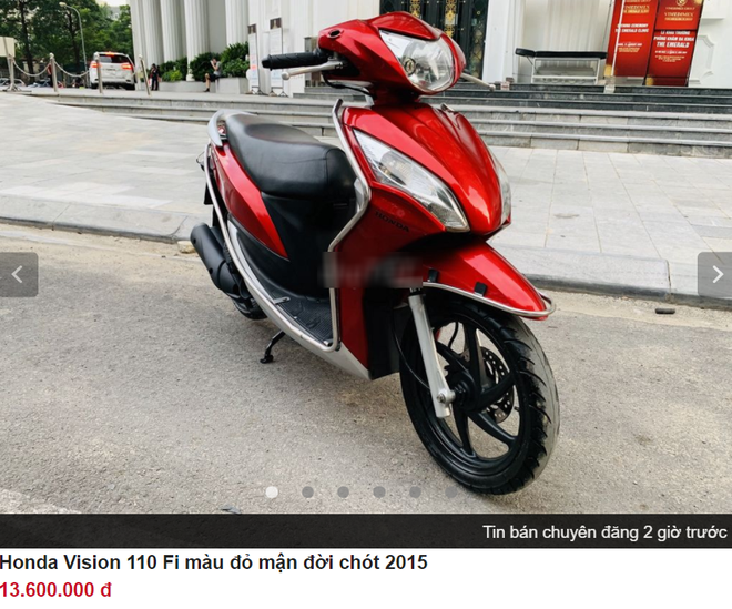 Đơn cử, trên chợ xe cũ, một chiếc Honda Vision được chủ nhân bán với giá 13 triệu đồng. Theo giới thiệu thì chiếc xe này đời 2015 màu đỏ, đã chạy 8.000km, cam kết đẹp như hình và chưa thay phụ tùng.