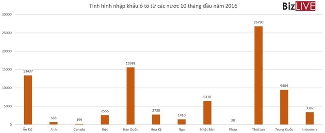 Xét về số lượng, hiện Nga là quốc gia đứng thứ 9 trong tổng số 12 nước có xe ô tô nguyên chiếc xuất khẩu vào Việt Nam với 1410 chiếc trong 10 tháng đầu năm 2016.