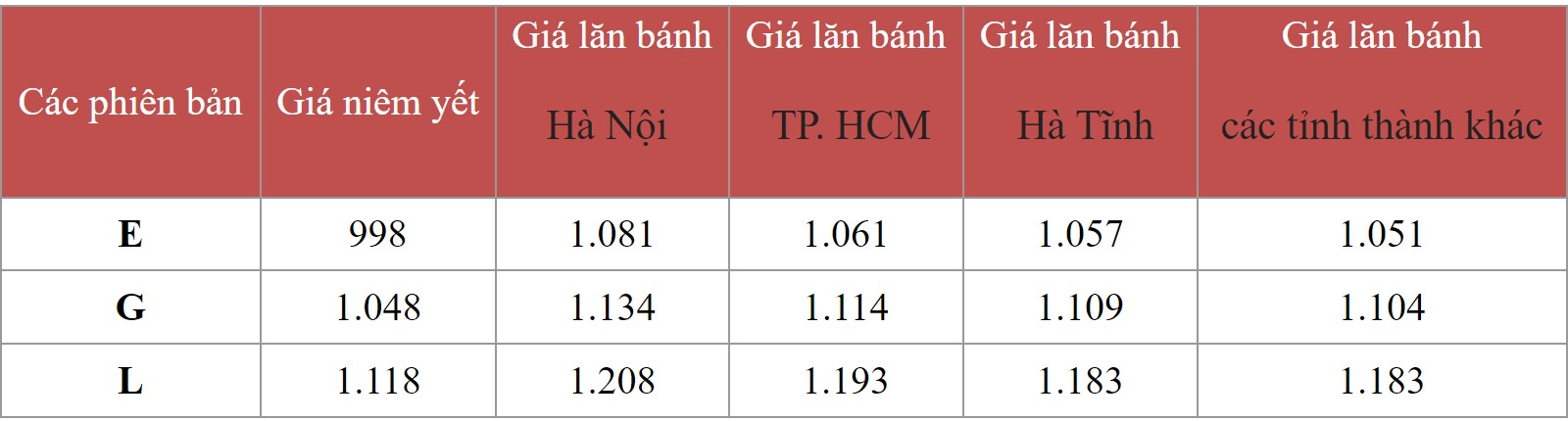 Giá xe lăn bánh = Giá niêm yết + Phí trước bạ (1) + Phí đăng kiểm (2) + Phí bảo trì đường bộ (3) + Bảo hiểm dân sự (4) + Phí biển số (5)