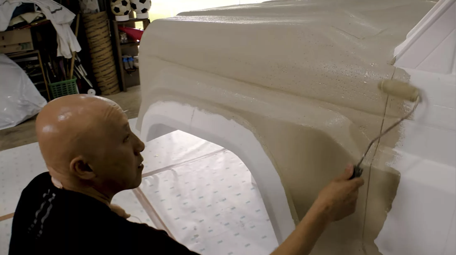 Sau khi thành hình, việc khó khăn nhất là sơn màu cho xe bởi bề mặt xốp khác biệt hoàn toàn với bề mặt vật liệu trên xe thật. Ông Masumi Yamaguchi thực hiện công đoạn này hoàn toàn bằng tay và khi hoàn thiện, dưới ánh sáng mặt trời, người xem rất khó phân biệt được nó là xe mô hình nếu không đến gần và sờ vào.