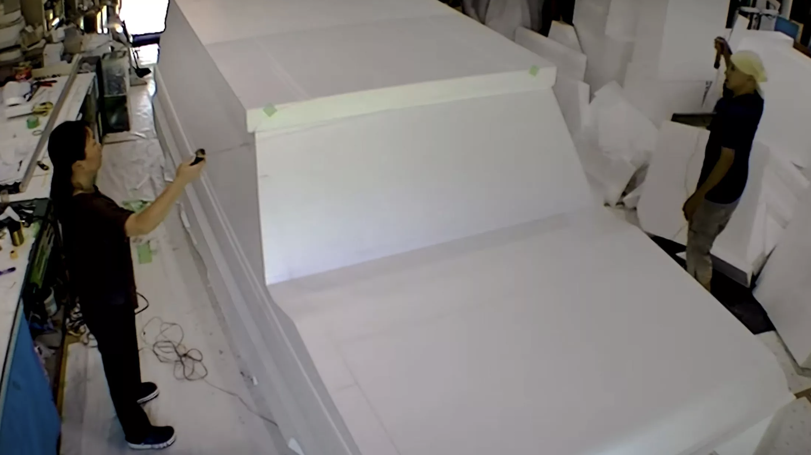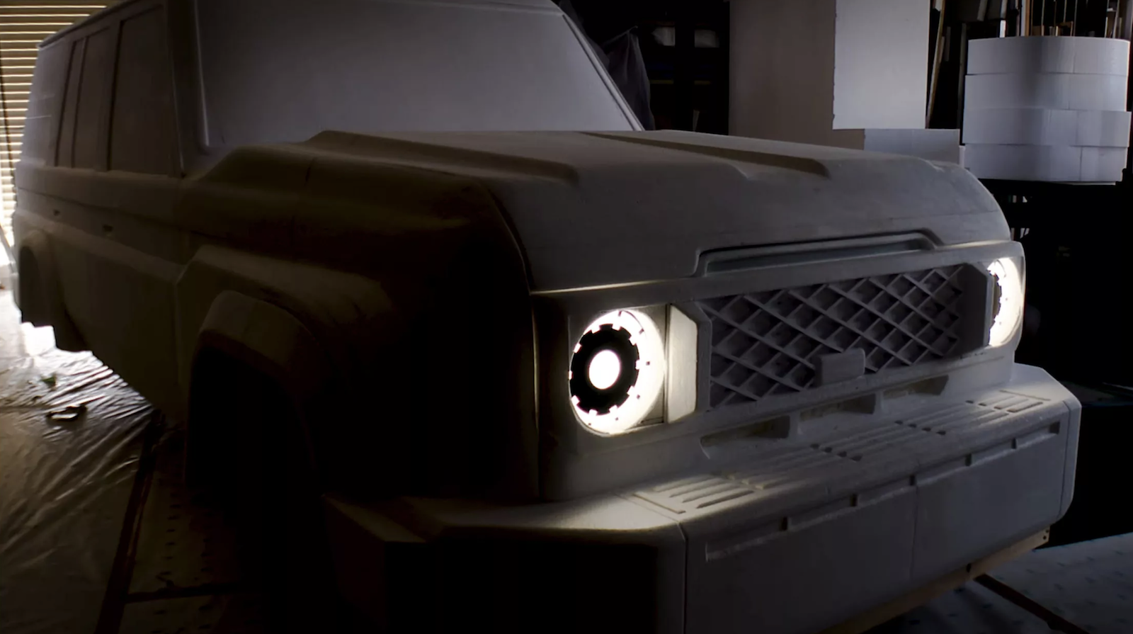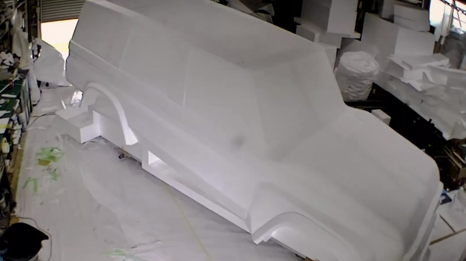 Bắt đầu từ những khối xốp khổng lồ, nhà điêu khắc Masumi Yamaguchi và các cộng sự của mình đã chế tác thô bước đầu thành các cụm bộ phận lớn như thân xe, bánh xe... rồi ghép thành chiếc xe theo tỉ lệ như xe nguyên mẫu.