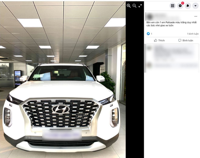 Một tư vấn bán hàng Hyundai mới đây đã rao bán xe Hyundai Palisade trên mạng xã hội. Theo những thông tin đi kèm bài đăng, đây là chiếc Hyundai Palisade mới duy nhất đang được rao bán. Xe có ngoại thất màu trắng, giá trị của xe được đồn đoán ở ngưỡng 2,5 tỷ đồng.
