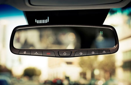| Camera chiếu hậu là một trong những trang thiết bị tiêu chuẩn của Hyundai Santa Fe 2017. |