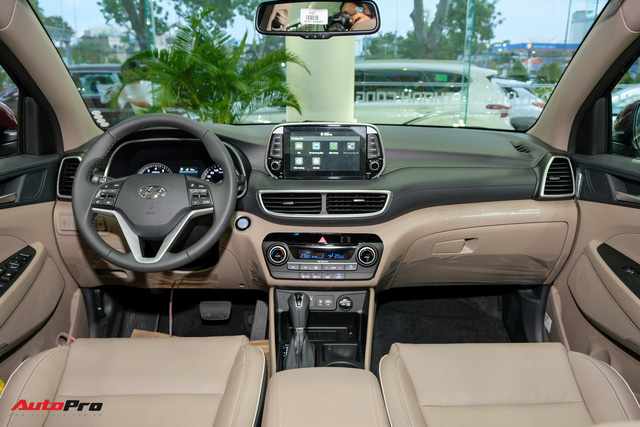 Điểm nhấn trong nội thất là màn hình cảm ứng trung tâm 8 inch đặt nổi giống "đàn anh" Santa Fe. Màn hình hỗ trợ Apple Carplay, bản đồ định vị dẫn đường vệ tinh dành riêng cho thị trường Việt Nam. Bộ xử lí Arkamys Premium Sound kết hợp 6 loa. Bên cạnh những trang bị tiện nghi như điều hòa tự động 2 vùng độc lập, cửa sổ trời toàn cảnh Panorama, cốp điện tự động, đèn tự động... Tucson được trang bị thêm sạc điện thoại không dây chuẩn Qi, gương chiếu hậu chống chói tự động ECM.