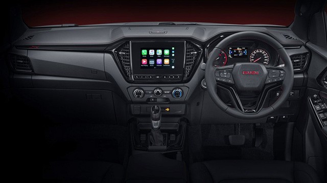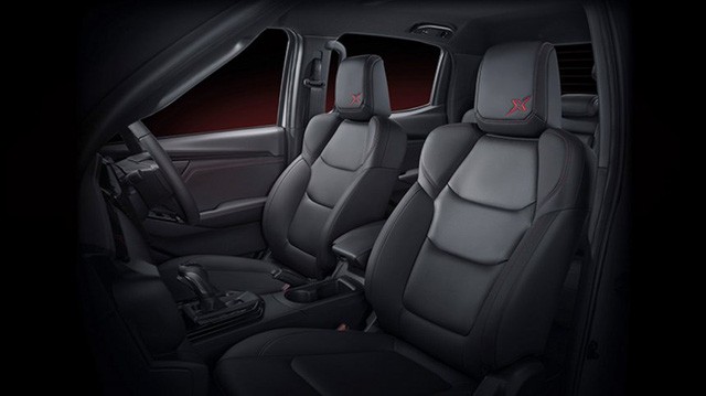 Chuyển hướng vào nội thất, D-Max X-Series trang bị nội thất bọc da tiêu chuẩn bên cạnh chỉ khâu cùng ốp đỏ tương phản trên vô lăng, phanh tay, bảng đồng hồ và táp lô. Tựa đầu mang logo X-Series độc quyền.