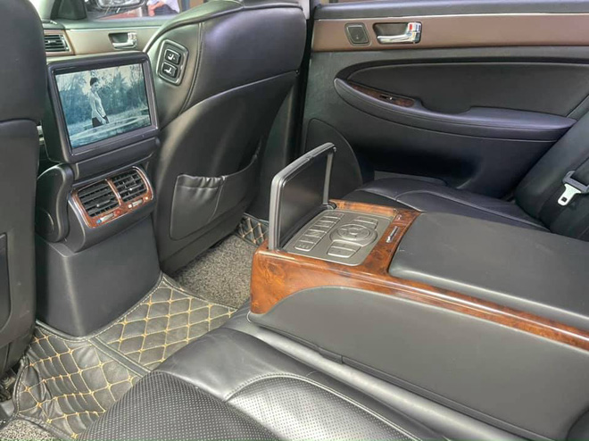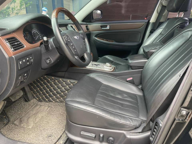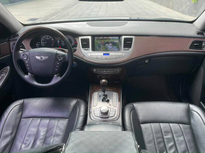 Sau 12 năm, những chi tiết bọc da và ốp gỗ bên trong xe vẫn cho cái nhìn tương đối ổn định. Điểm mạnh của Hyundai Genesis BH380 chính là việc được trang bị vô số option, tiêu biểu như: Dàn âm thanh từ thương hiệu Lexicon sử dụng 17 loa công suất 528W kết nối đầu CD/DVD/MP3/ bluetooth, cửa sổ trời, vô lăng chỉnh điện, điều hòa tự động 4 vùng, màn hình giải trí cho hàng ghế sau.