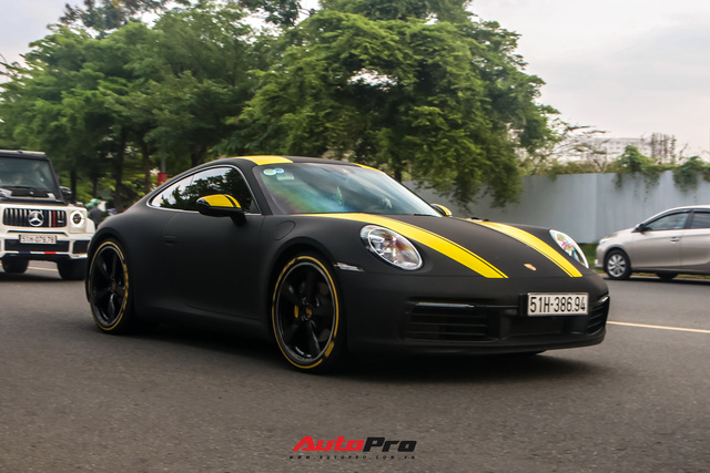 Cuối cùng là chiếc Porsche 911 Carrera của vợ chồng Joyce Pham (con gái đầu của Minh "Nhựa) với lớp decal màu đen nhám, nổi bật là những dải decal màu vàng.