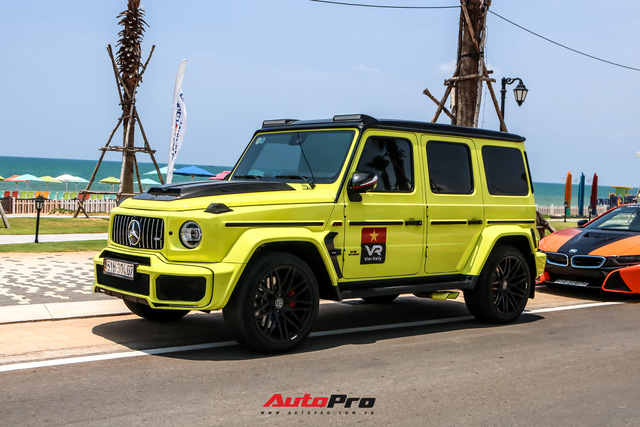 Ông vua địa hình Mercedes-AMG G63 hầm hố lại trở nên nổi bật hơn hẳn với lớp decal màu xanh nõn chuối.