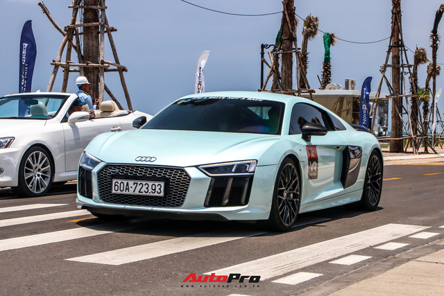 Một chiếc Audi R8 V10 Plus có phần giản dị khi chỉ được dán decal màu xanh dương. Nguyên bản, xe có màu đỏ.