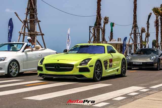 Mặc dù không mang thiết kế thu hút như Lamborghini hay Ferrari, nhưng chủ nhân chiếc Mercedes-AMG SLS độ bodykit từ phiên bản Black Series vẫn biết cách khiến "vợ hai" nổi bật bằng lớp decal màu xanh nõn chuối.