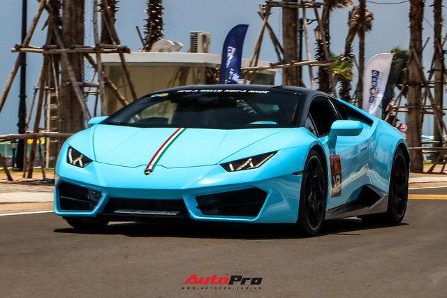 Một chiếc Lamborghini Huracan nổi bật với lớp áo màu xanh dương. Nguyên bản, xe có màu đỏ.
