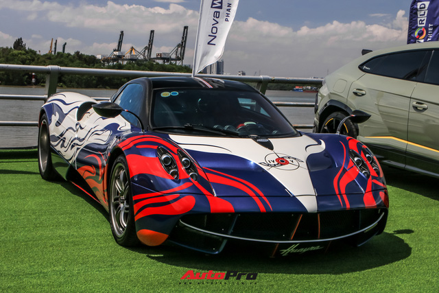 Tương tự, chiếc Pagani Huayra của vị doanh nhân này cũng nổi bật với lớp decal ba tông màu xanh - trắng - đỏ, trong khi màu nguyên bản của xe là cam.