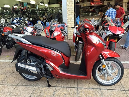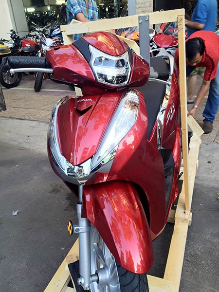 Chiếc tay ga cao cấp Honda SH300i 2015 đầu tiên về Việt Nam bằng đường hàng không có màu đỏ bắt mắt.
