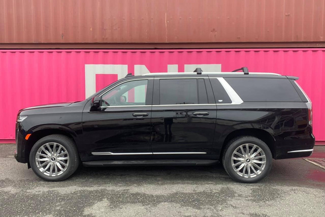 Đen là màu sơn thường được các chủ xe Cadillac Escalade lựa chọn. Chiếc xe này cũng có màu ngoại thất đen. Ở thế hệ mới, Escalade trông dữ dằn hơn nhờ nhiều thay đổi ở ngoại hình như lưới tản nhiệt khổng lồ, cụm đèn mảnh, dải LED định vị chạy dọc. Bộ mâm đa chấu sáng màu kích thước tới 22 inch. Nhiều chi tiết chrome nổi bật trên nền sơn đen. Do thuộc bản ESV nên chiếc xe có chiều dài tổng thể lên tới 5.763 mm, tức dài hơn 381 mm so với bản tiêu chuẩn.
