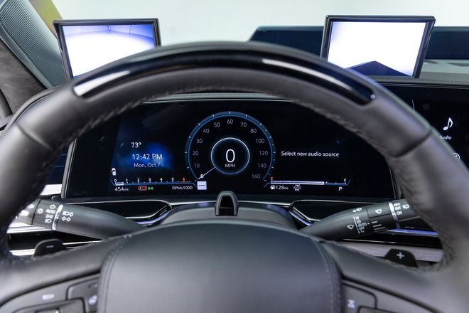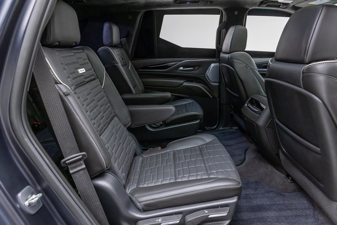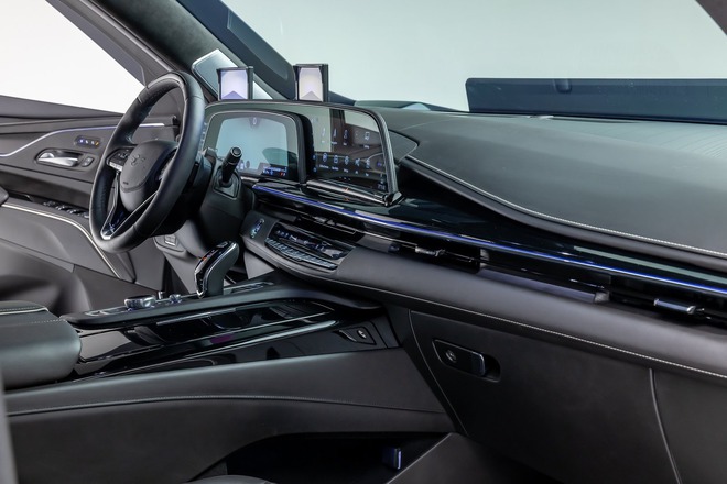 Bên trong, xe có 7 chỗ ngồi, có thể tùy chọn 10 kiểu ghế khác nhau và rất nhiều tùy chọn màu da. Các tính năng giải trí giữ nguyên từ Escalade, với màn hình giải trí có khả năng kết nối Apple CarPlay/Android Auto, màn hình HUD, đồng hồ điện tử,...