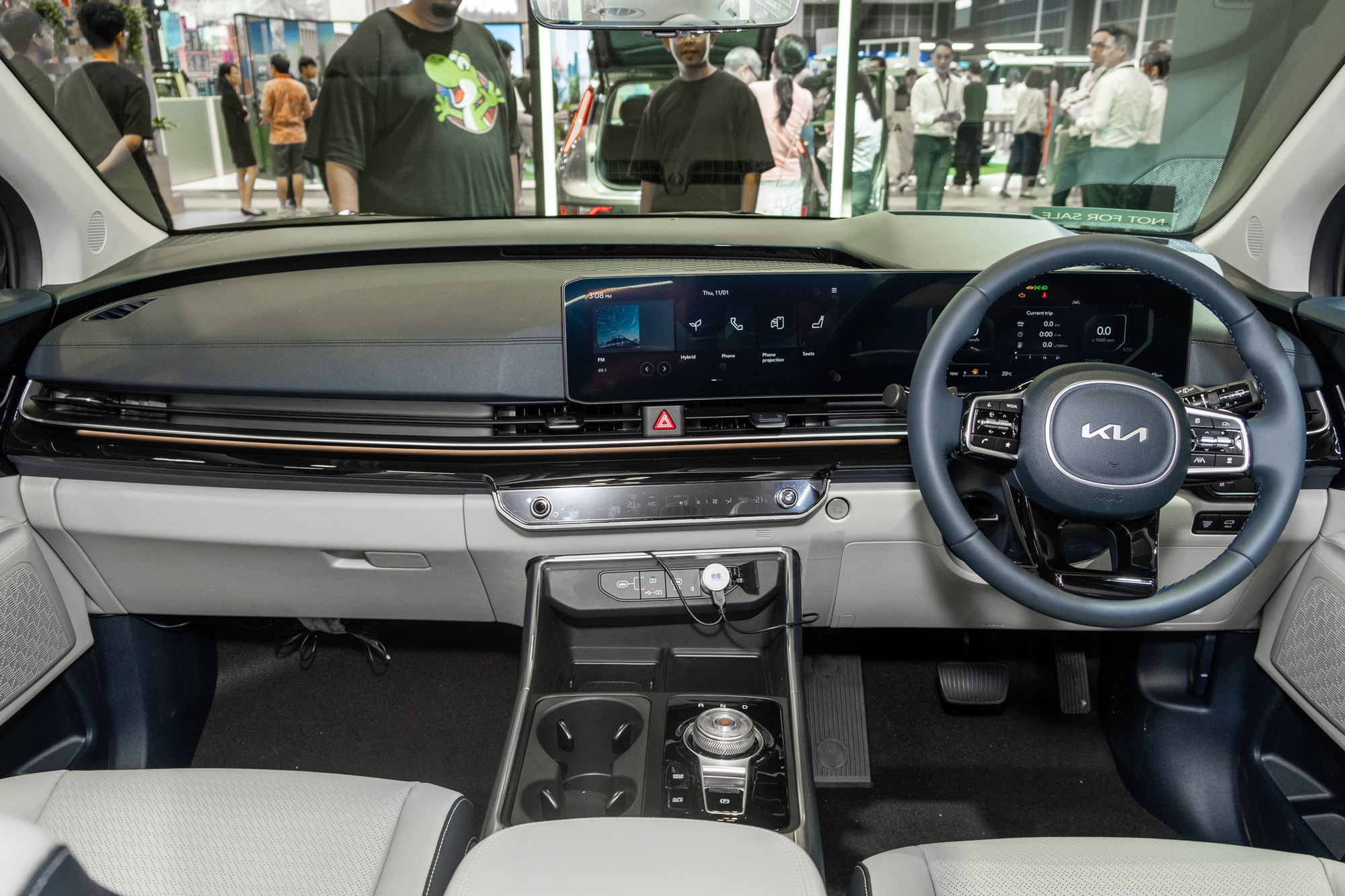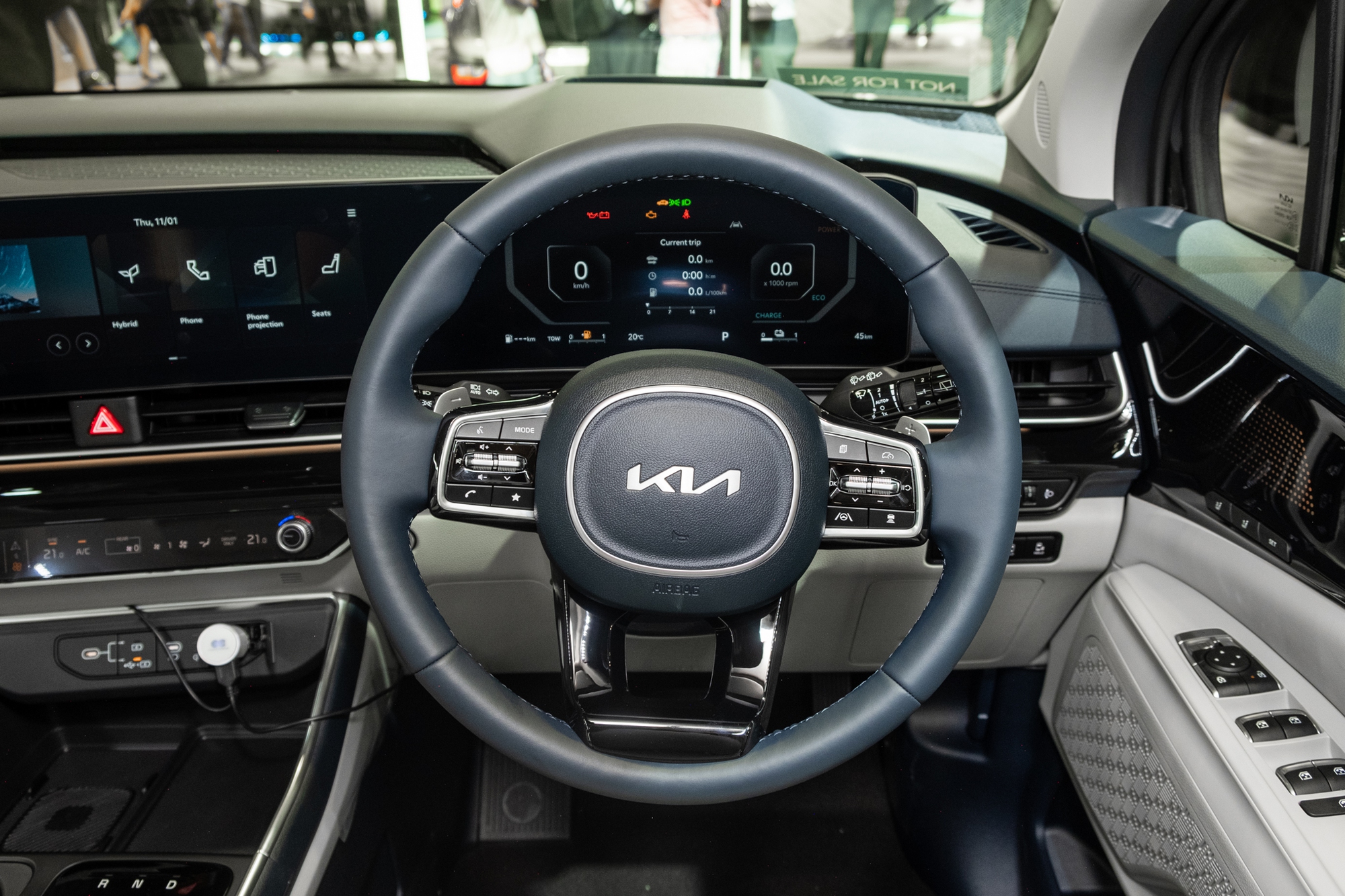 Nội thất Carnival mới cũng được tinh chỉnh lại, trông hiện đại hơn. Phía sau vô-lăng là cặp màn hình 12,3 inch đặt trong cùng một mặt kính và màn hình hắt kính (HUD). Cụm điều khiển điều hoà nhìn sang hơn khi giản lược nút bấm vật lý, còn mặt kính dài và 2 núm xoay.