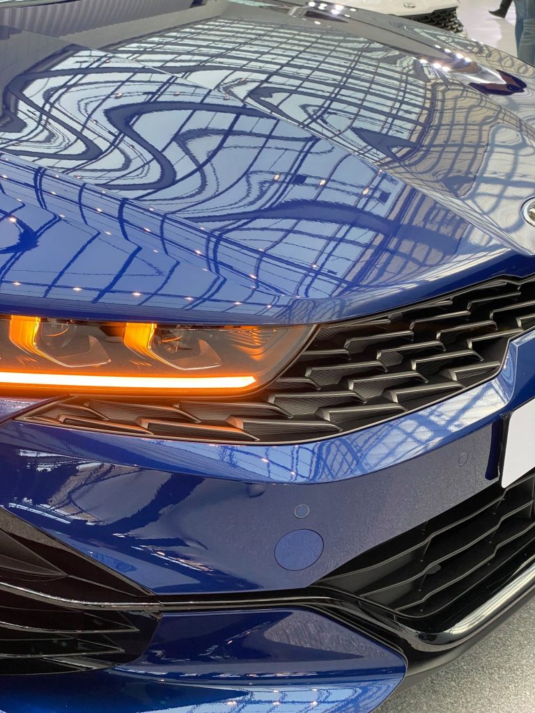 Đầu xe dài kết hợp đuôi xe ngắn cùng trần xe cong tạo ra vóc dáng thể thao xen lẫn nét sang trọng chưa từng có trên chiếc sedan Hàn Quốc, bổ trợ bởi đèn hậu rộng chạy ngang đuôi xe cùng cánh gió mini gắn cốp ngay phía trên. Chiều dài cơ sở xe tăng mạnh lên 2.850 mm giúp mở rộng không gian cabin, chiều dài tổng cũng tăng 50 mm lên 4.905 mm còn chiều rộng tăng 25 mm lên 1.860 mm.