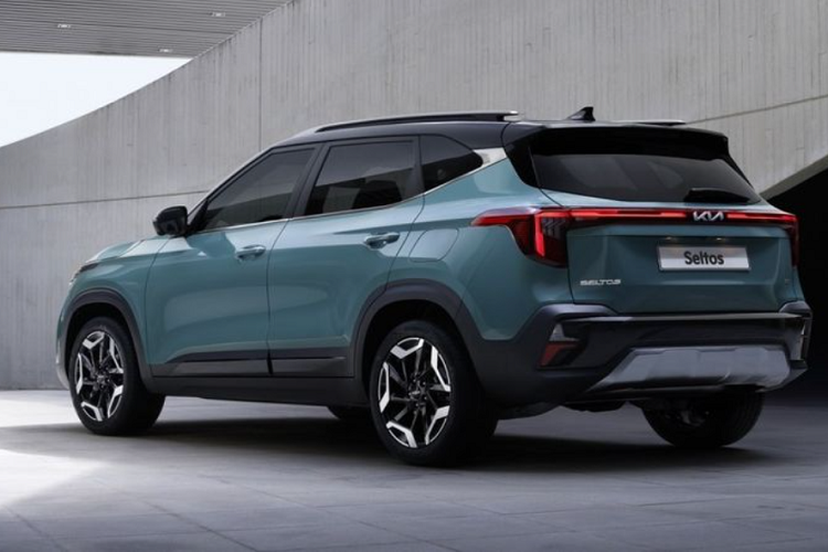 Trong loạt ảnh mới nhất, có 2 chiếc Kia Seltos 2023 xuất hiện, bao gồm một chiếc sơn màu xanh ngọc với nóc đen tương phản, đi kèm bộ vành hợp kim 18 inch thiết kế đa chấu và sơn phối hai màu thể thao.