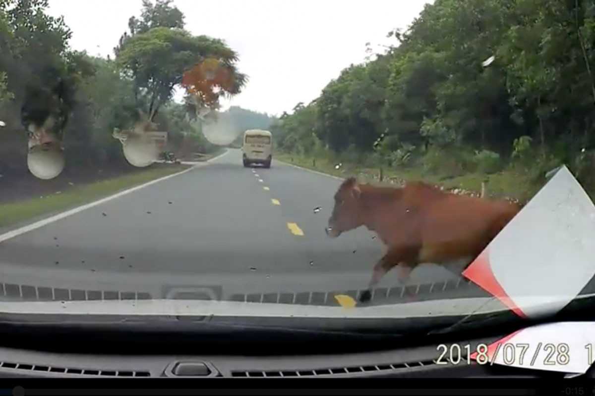 Chạy xe trong thành phố, bạn sẽ bắt gặp những cảnh tượng động vật bất ngờ chạy qua đường. Nhưng đó lại là tình trạng khá phổ biến trên những đường tỉnh lộ hay những vùng miền hẻo lánh.
