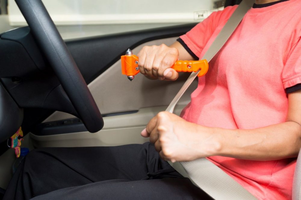 Hầu hết xe ô tô hiện nay đều sử dụng cửa kính bằng điện. Một số trường hợp mạch điện cửa kính bị chập điện do dính nước và không thể mở ra. Vì vậy, để an toàn tài xế nên chuẩn bị sẵn búa phá kính trên xe.