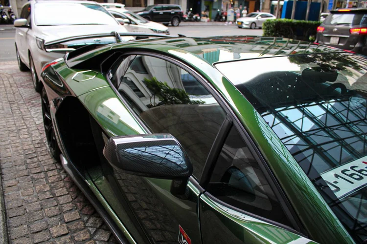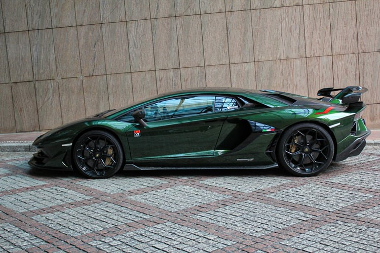 Chiếc Lamborghini Aventador SVJ này sở hữu ngoại thất cá nhân hóa với màu sơn Verde Ermes đặc biệt. Nước sơn được hoàn thiện với hiệu ứng màu xanh đậm chuyển nhạt rất bắt mắt tùy theo điều kiện ánh sáng.