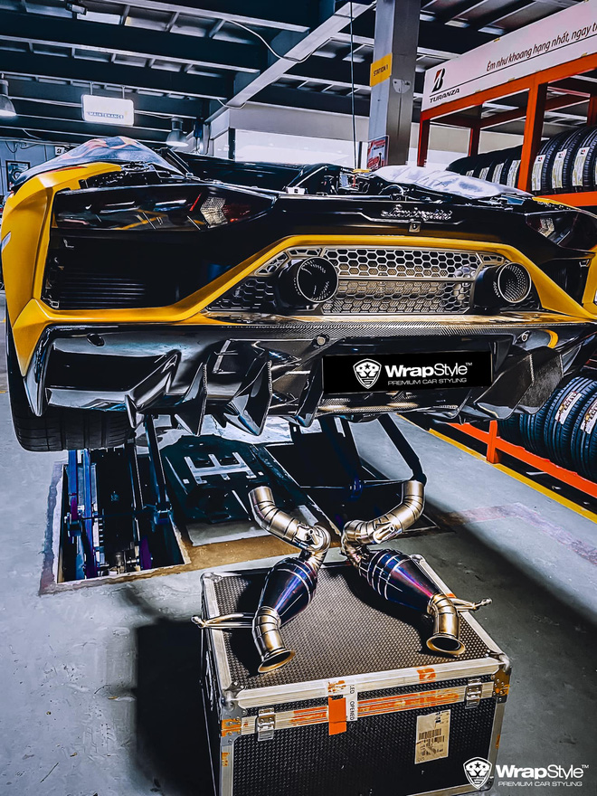 Chiếc Lamborghini Aventador SVJ Roadster độc nhất Việt Nam mới đây đã được chủ nhân ở Hà Nội nâng cấp hệ thống ống xả. Đây là chiếc Aventador SVJ thứ ba về Việt Nam và là chiếc duy nhất thuộc biến thể mui trần.