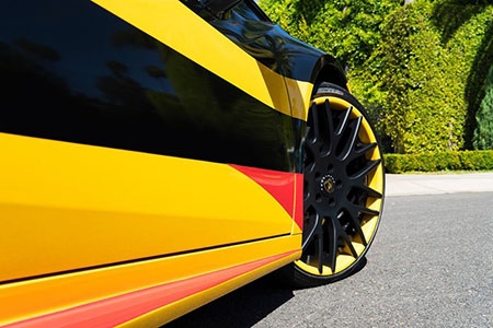 | Bộ mâm của xe cũng được phối thêm màu vàng bên cạnh màu đen nguyên bản để hợp với tổng thể của xe. |