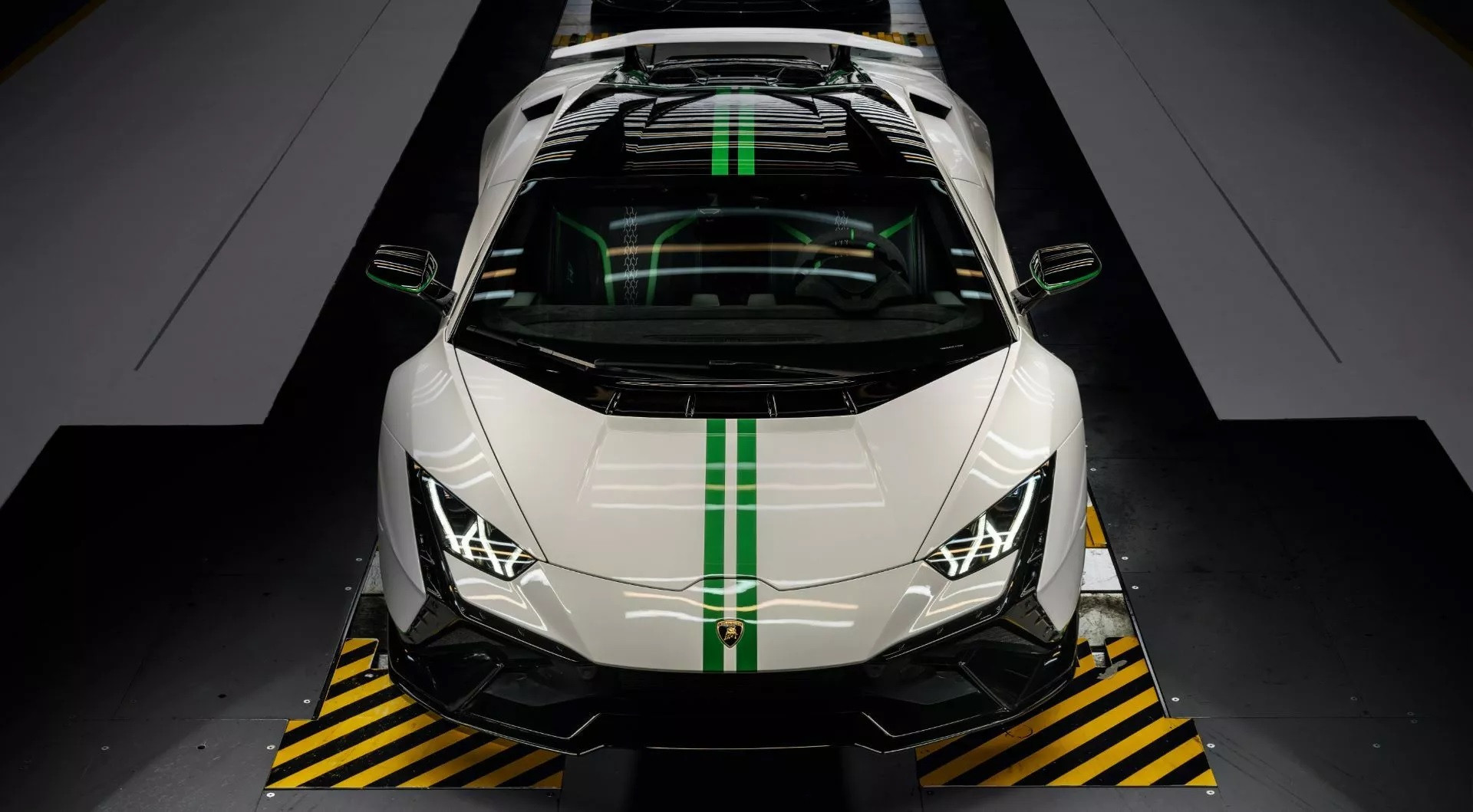 Hai biến thể của Lamborghini Huracan Tecnica phiên bản giới hạn lấy cảm hứng từ môn đua xe thể thao, kết hợp cùng màu sắc của lá cờ Ý. Biến thể đầu tiên có thân xe màu xám với các chi tiết màu đen và đỏ, nội thất bọc vật liệu Alcantara màu đen và nhấn nhá bằng màu đỏ.
